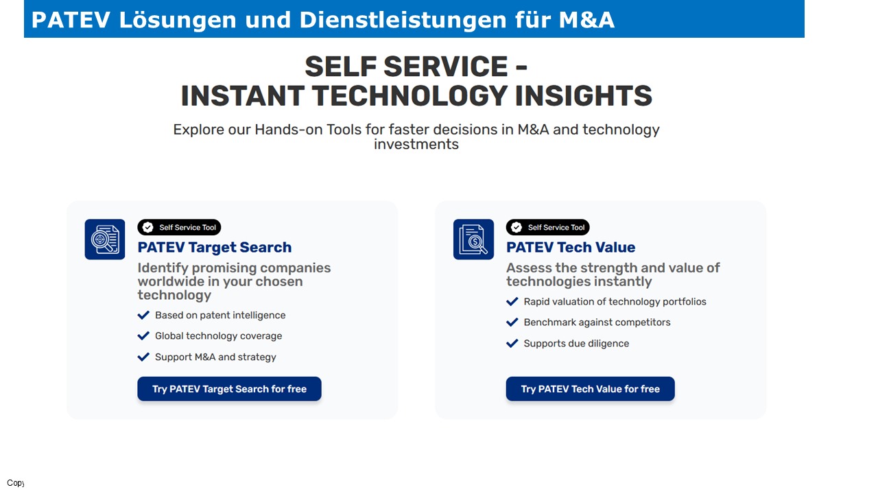 Er illustriert dies anhand von Beispielen wie teilautomatisierter Target-Suche (z.B. durch die PATEV Tech Value Intelligence) oder der automatisierten Analyse und Übersetzung von Due-Diligence-Dokumenten.